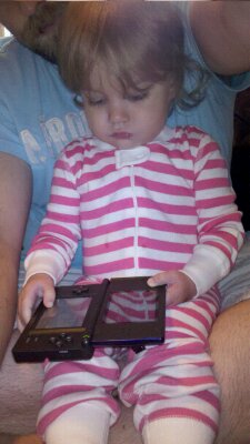 Today Violet got her hands on Jacobs DS and brought it over to me. She promptly sat on my lap and expiramented with the different buttons. I couldn’t help but snap the picture.