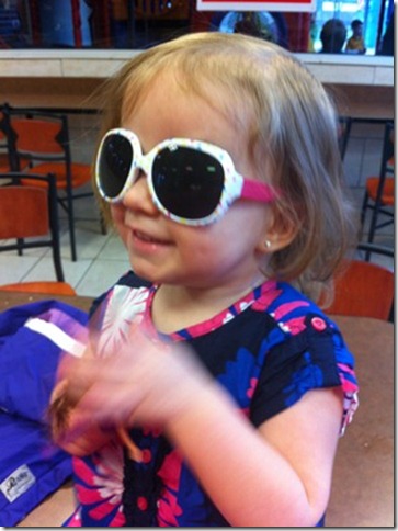 Today while out Violet picked out a pair of sunglasses. The most amazing thing about it was that she kept them on. So now I wonder if we’ll be able to find a pair that Jacob will keep on this summer.