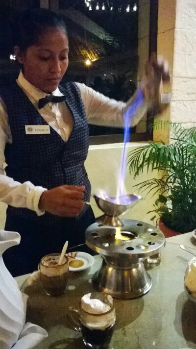 Each night on our vacation, we’ve found our selves relaxing in the Lobby bar after dinner. Each Night I get a Mexican Coffee, The first night I didn’t see them make the last two I watched and was impressed. Today I captured it and It’s my picture of the day. What’s buying is the Tequila and Coffee Liquor , before being added to the coffee and whipped cream. It’s a great night cap.