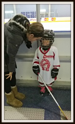 Today was our first day of Hockey in the new year. Both kids were excited to be back, and I was too. Mostly, I wasn’t a fan of the 8:50 start for Jacob’s game. Of course it could have been worse. He has some 7am games coming up. Ever since Jacob took to the ice for his first game 2 and a half years ago, I’ve been amazed by home much he improved week to week. With Violet its seems like that process has been accelerated, I can’t wait to see how well she’ll be doing as the season comes to an end in a few months. It really is a joy to head to the rink each week to watch how hard they try and how much they improve. Our picture of the day is of Melissa talking to Violet before the game.