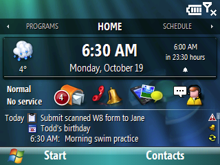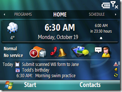 Facade adds tabs to your Home screen, Home, Schedule, Tasks, Calendar, Weather (If you have SBSH’s Pocket Weather installed) and Programs. Plus it allows for the addition of third party tabs, which I haven’t tried yet. There are also Skins you can get that change the look and feel. For my review I’m talking about the default layout.