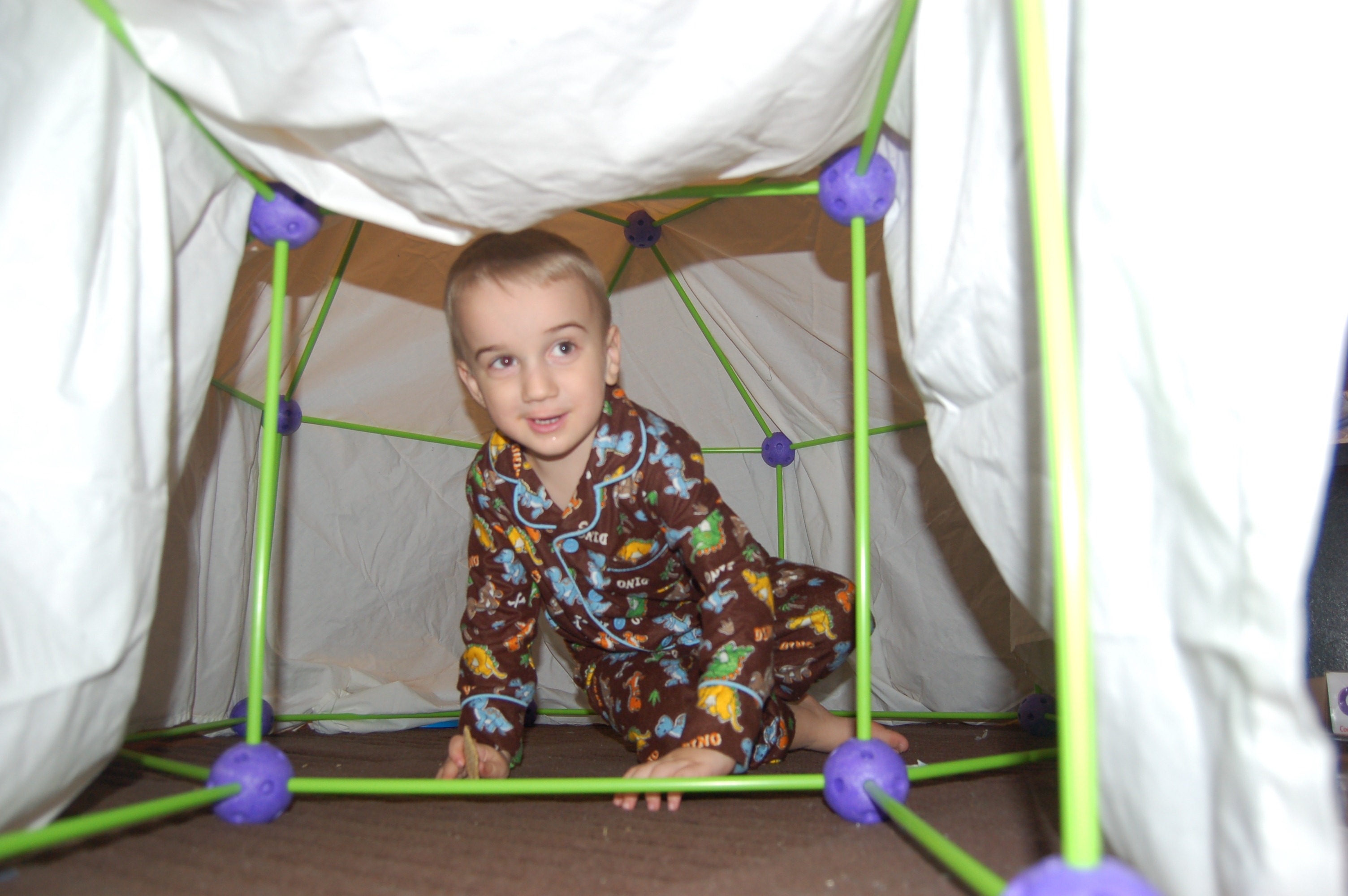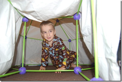 For Christmas Jacob got Crazy Forts, so today the two of use built his first fort. It was fun pulling the pieces out of the box, watching as he counted the purple ball connectors. Then we looked at the examples on the box and he picked the one he wanted to build. He had a little trouble putting the pieces together himself, but I’m sure he’ll get it in time. It was a great Father Son time. I can’t wait till we build our next fort. of course I can already see that to build really cool forts we’ll need to get another set or two.