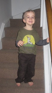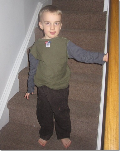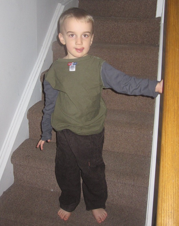 This is what happens when you send a 3 year old to dress himself. We were having a lounging around in PJs sort of a day, everyone was getting over being sick. Jacob wanted to build his Train Crazy Fort and I thought I would take some pictures for my Photo of the day. So not wanting him to be in his PJs I asked him to go up and get dressed. Now I was a little curious to see what he’d choose to put on, I don’t really know what I expected. What he chose was a cute little outfit. Though the shirt was inside-out and backwards and the pants were just backwards. I was impressed. Of course when I saw how he was dressed I new what I’d be using for my picture and once again forgot to get pictures of the Train Crazy Fort.
