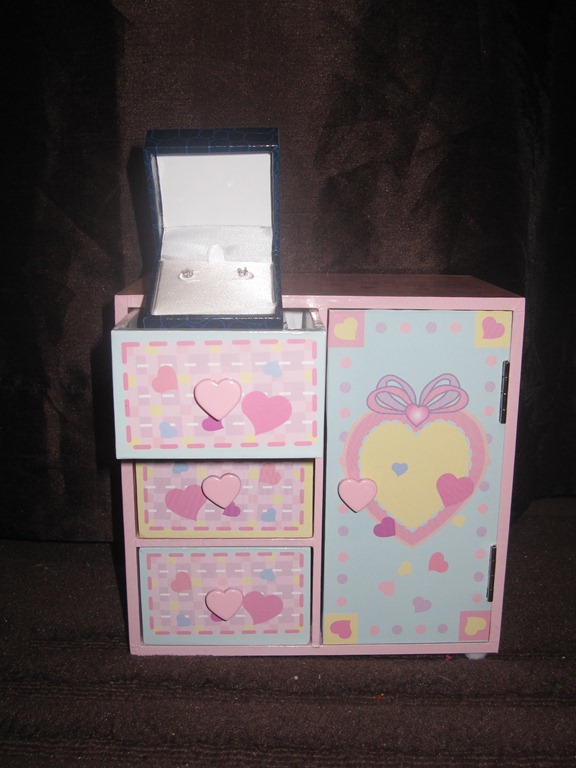Tomorrow my little girl turns one. I can’t believe it. Tonight I decided to take a picture of some of Violets presents before Melissa rapped them up. We got our little cupcake a pair of Earrings and her first Jewellery Box.