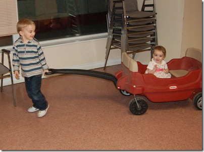 Glad to see Jacob pulling Violet in the wagon….that way he can build up to pushing me around in my wheelchair when the time comes LOL