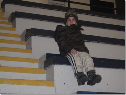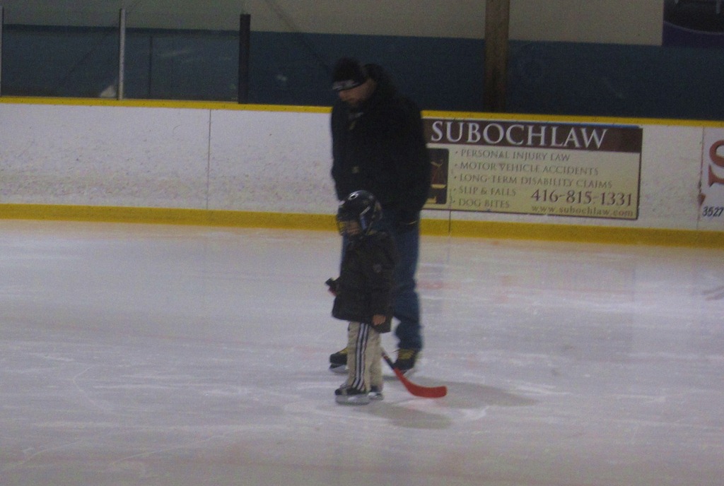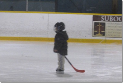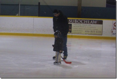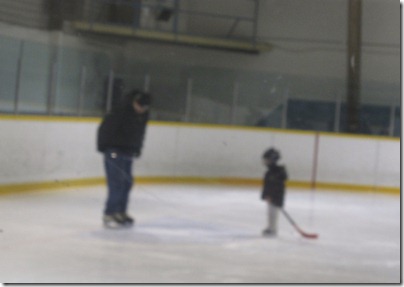 Today was Skating day, so Jacob and his Papa strapped on there skates and headed out on to the ice. Watching Jacob on the ice is quite an experience. He really gets it. He spent almost the entire lesson on his feet, skating around. At one point he skated away from Danny and Joined one of the other groups on the ice to do there lesson. Which was practicing turning around and working on balance. He did very well with the lessons, though he’s still having trouble standing up on his own. I’m sure he’ll get that soon.