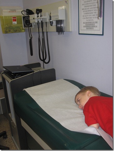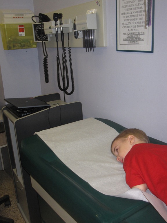 Last night our sweet boy turned into an angry little man. It was right before skating and for a time it seemed we’d have to cancel. But a time out and the prospect of skating with Papa seemed to clear up. That is until the middle of the night when he woke up screaming that he was in pain. He said his Ears hurt. Tylenol helped but only for a little while before he was up again. We managed to get him through the night and in the morning he just wasn’t himself. He spent most of the day in bed, or complaining about the pain. He also ran a fever, so it was off to the Kids Clinic at St Joes. The wait wasn’t to bad and the doctor was great with Jacob. It turns out to be a double ear infection. So Antibiotics for 7 days and he should be better. It’s been a while since we had an ear infection. This is the first time that he could express the pain. It’s hard to be a parent and have your child tell you he’s hurting and even where he is hurting but not be able to really do anything. Hopefully the drugs will clear it up fast.