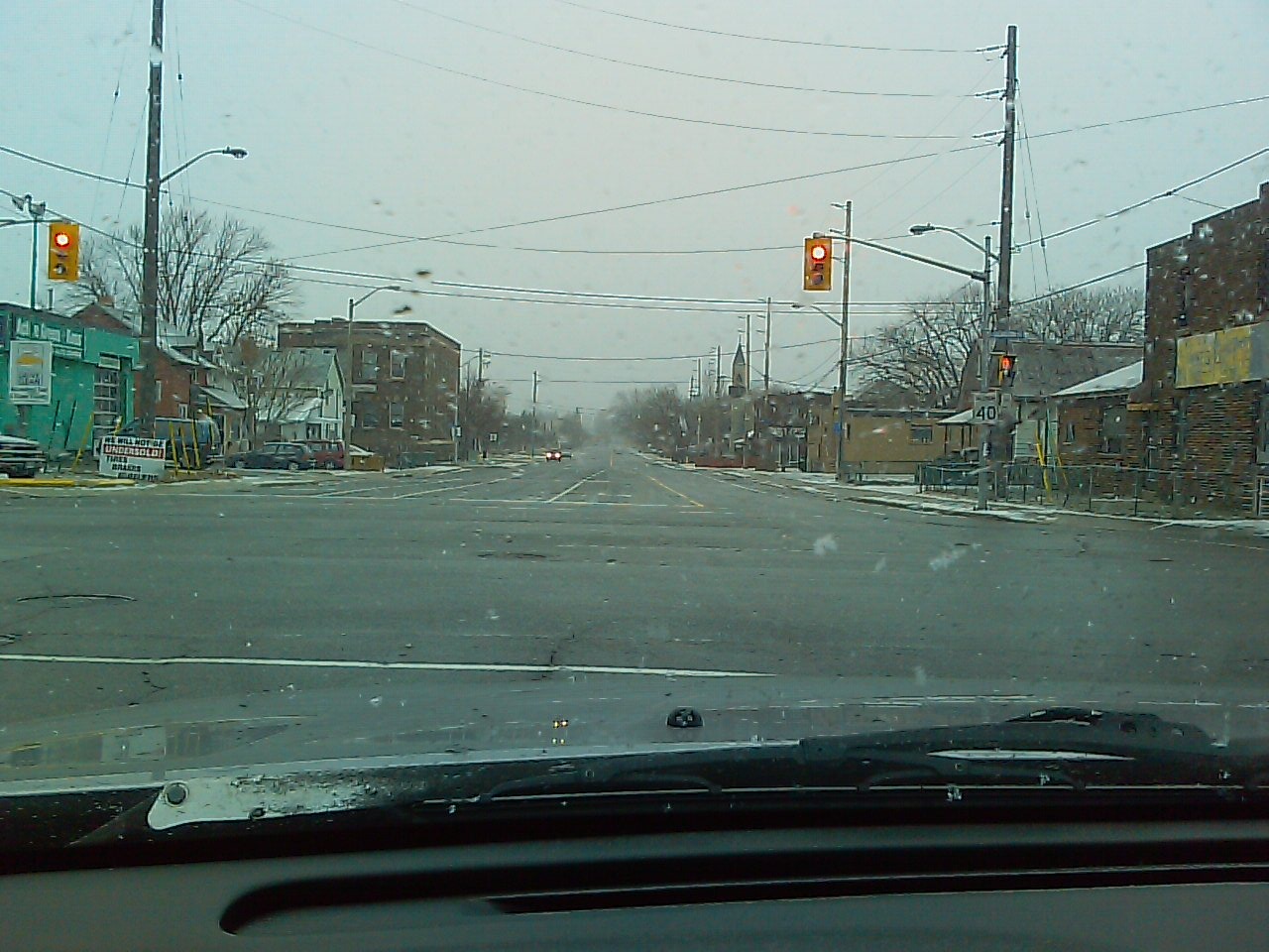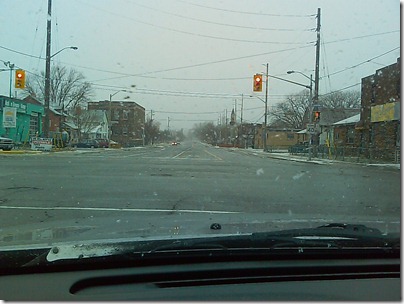 My first photo for Project 365. It seems funny to me that my first photo would be taken from Melissa’s phone camera, Its the same model as my phone that died which supposed to be the camera I was going to use for most of my Project 365 pictures. I had hopped to capture the New Year snow fall I saw while running an errand this morning, instead all I captured was the desolate streets.