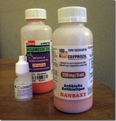 Tonight we take a look at Jacobs Meds. Today Jacob started a third treatment for his double ear infections. It started a week and a half ago when he complained of ear pain, after a trip to the Kids Clinic (Project 365 Day 28). We followed up with a trip to the pediatrician last Wednesday to do a check for swimming and just to make sure it was healing, it wasn’t, he got a boost to the first round of Antibiotics and an ear drop. So today when he complained about his ear hurting we scheduled another visit to his doctor. Turns out that both ears have a perforated eardrum and now he’s on a another round of Antibiotic. I’m really hoping that this super strength drug does the trick and his ears can get better.