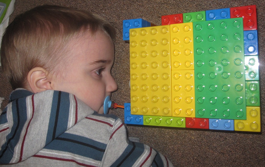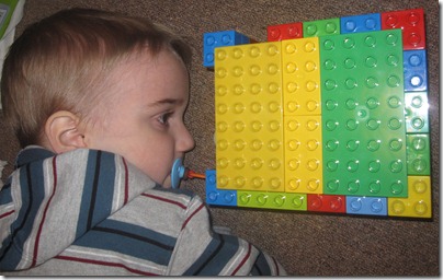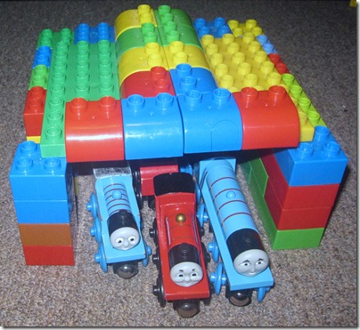 Tonight for play time with Jacob we built a shed for his trains out of Lego. We started by making letters out of his Lego and spelling his name, but then the thought of a shed for his trains came up and away we went. It was a fun time.  Though as it seems is always the problem with Lego we didn’t have enough pieces.