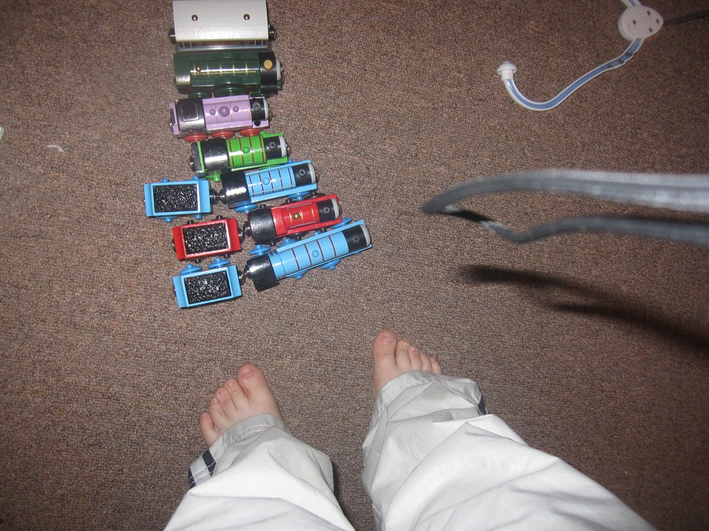 Today we have a couple of bonus pictures, the first is Jacob looking in the shed for his trains. The second is one Jacob took of his trains.