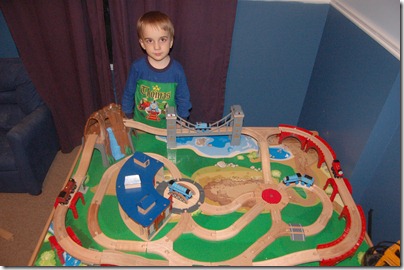 After a long week, tonight was family night. We shared a pizza and wings dinner with Nan, before Jacob and I disappeared upstairs to ‘Do Something Different with the Train set.’. It was a nice relaxing evening, it was Jacob’s choice to play with his train set. It was nice to have a night that was just the 2 of use playing in his room. It’s these moments that I really enjoy as a dad. Perhaps tomorrow will be the day to turn our freezer box into a fort.