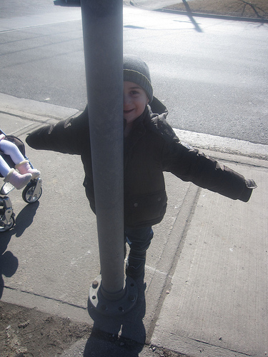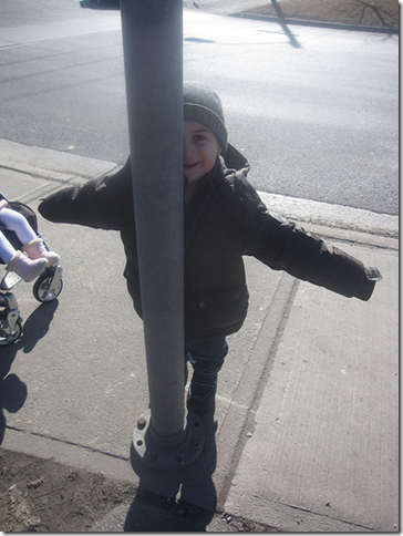 Our picture is from the outing. Jacob is ‘hiding’ behind the pole. So we thought it was strange to see a pole with arms.
