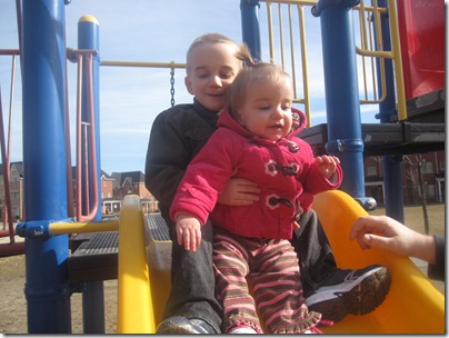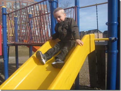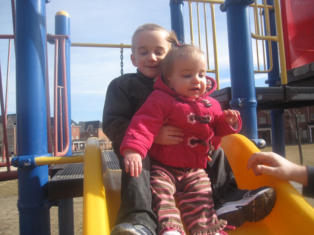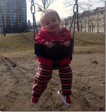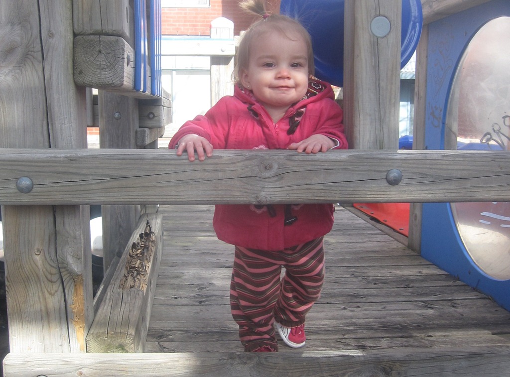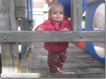 With the spring weather we’ve been having it’s harder and harder to spend the entire day inside. Today I was working from home and when I realised that we were out of milk, I had the perfect excuse take the kids out for a walk. On the way back we stopped at some of the local playgrounds.  Violet really enjoyed the slide, and the swings.