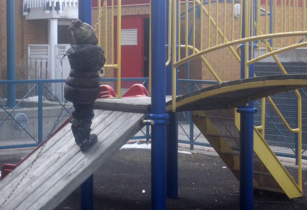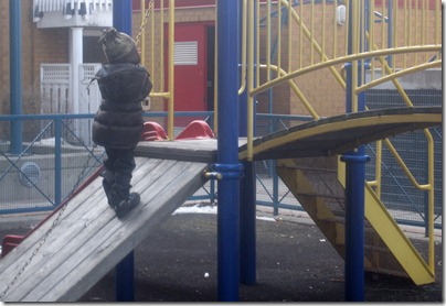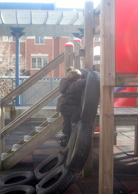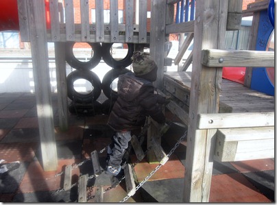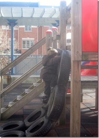 One perk of my job is that I can work from home one day a week. I helps our child car and allows me to send time with the kids. During the day today it seemed like such a nice day that I bundled the kids up and headed out for a short trip to some of the local parks. Jacob really enjoyed running around outside. It will be nice when the weather is warmer and it’s not such a production to get the kids ready.