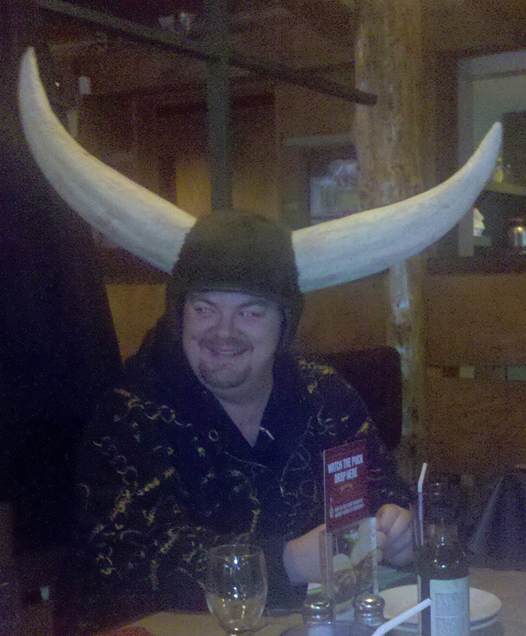 Doesn’t the birthday boy look cute with his horns and devil eyes. LMAO