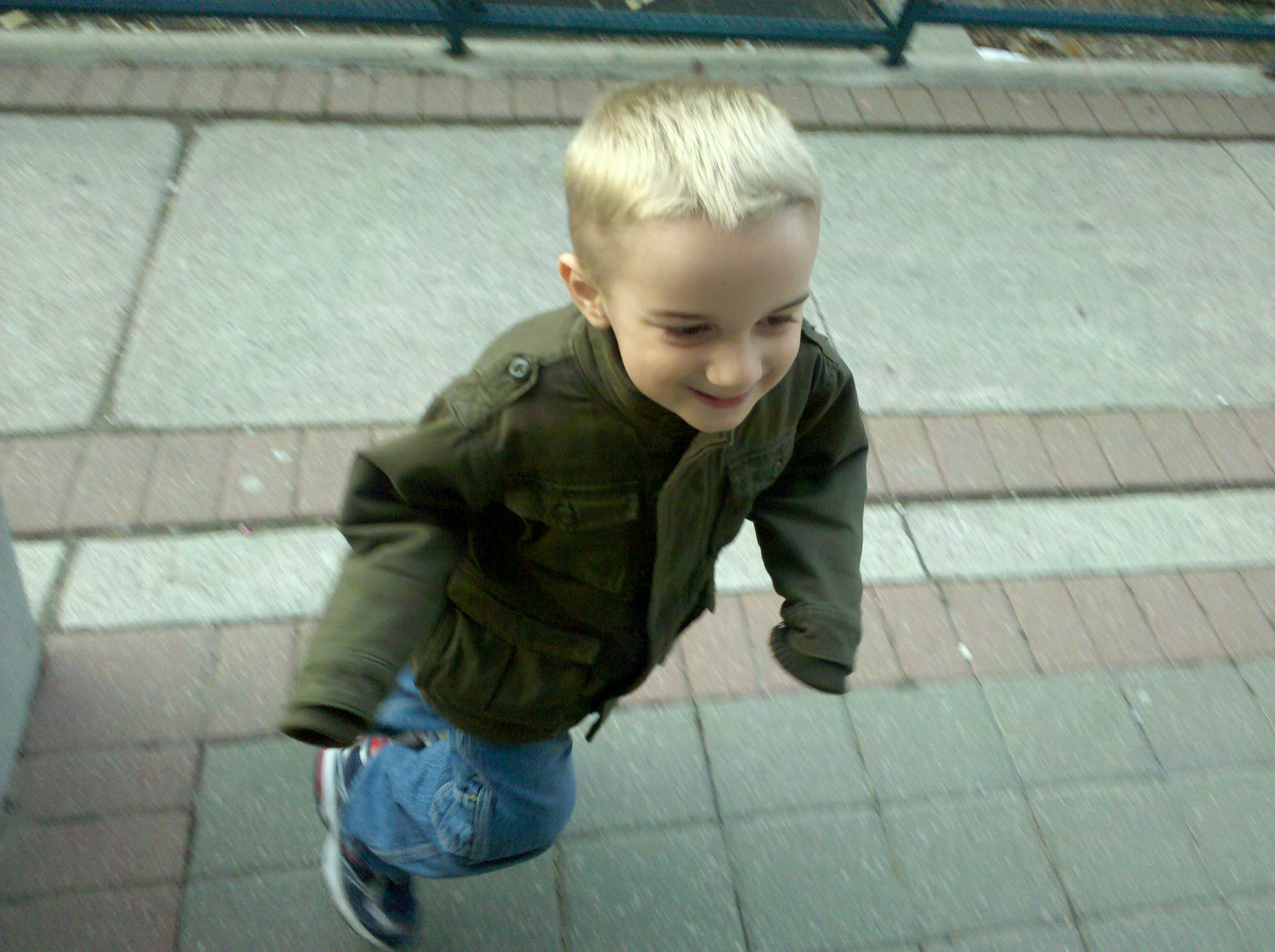 Today we have a picture of Jacob running by while I bbq’d some chicken for dinner. It was a strange little moment, I had pulled my phone out to try to get a picture of my little guy but he wouldn’t stand still. At first I didn’t think I got anything worth keeping, but after looking over the results I thought it was an interesting photo. So here it is, what do you think?