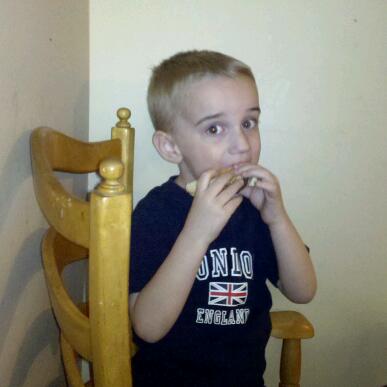 Jacob takes a big bite out of his lunch. Today was mostly a lazy day, with the family enjoying the morning together, before Jacob and I went to try on our tuxes for Nana and Papa’s wedding next weekend. When we got back I grilled up our lunch and we enjoyed it before mommy headed off to work.
