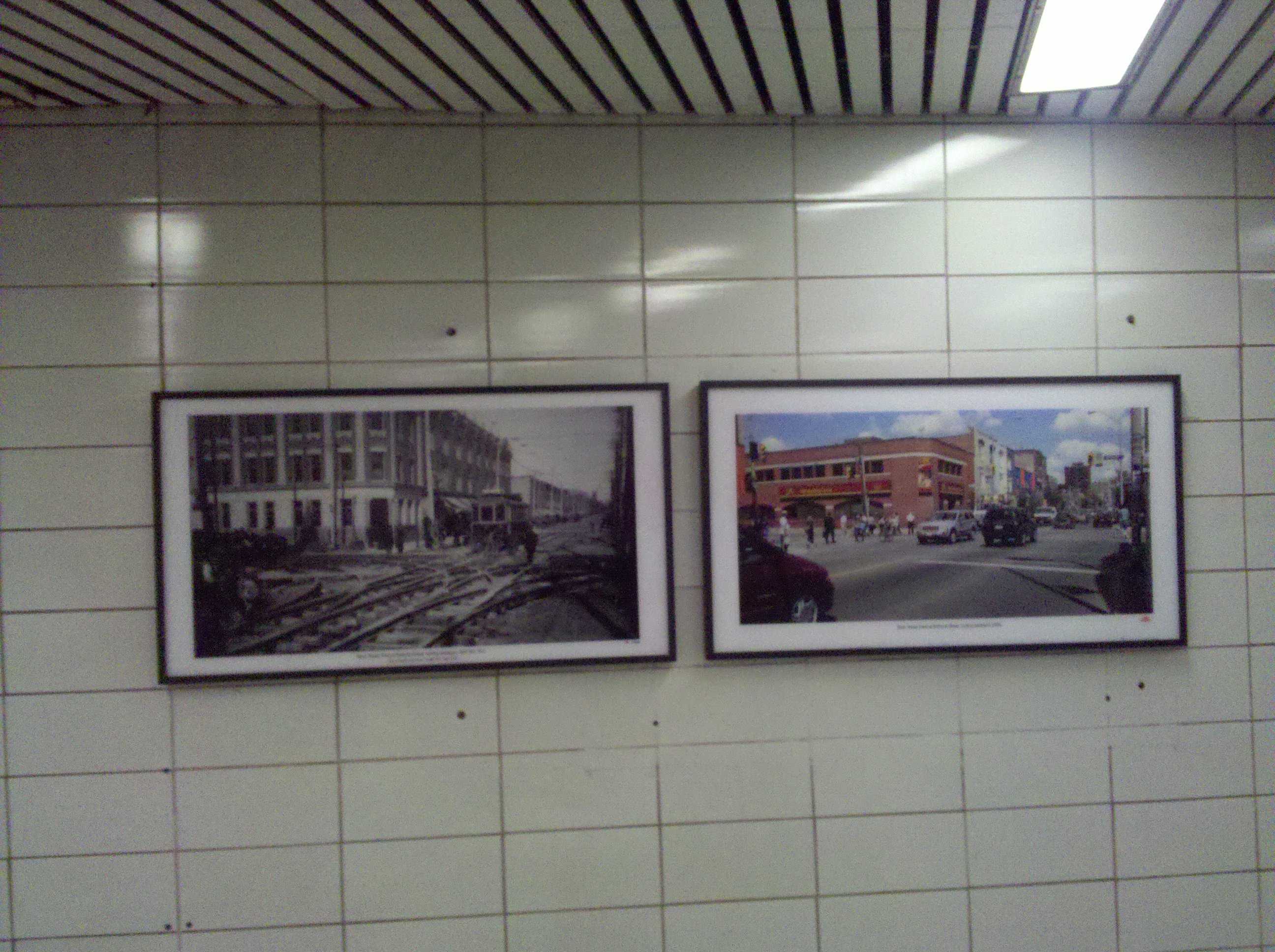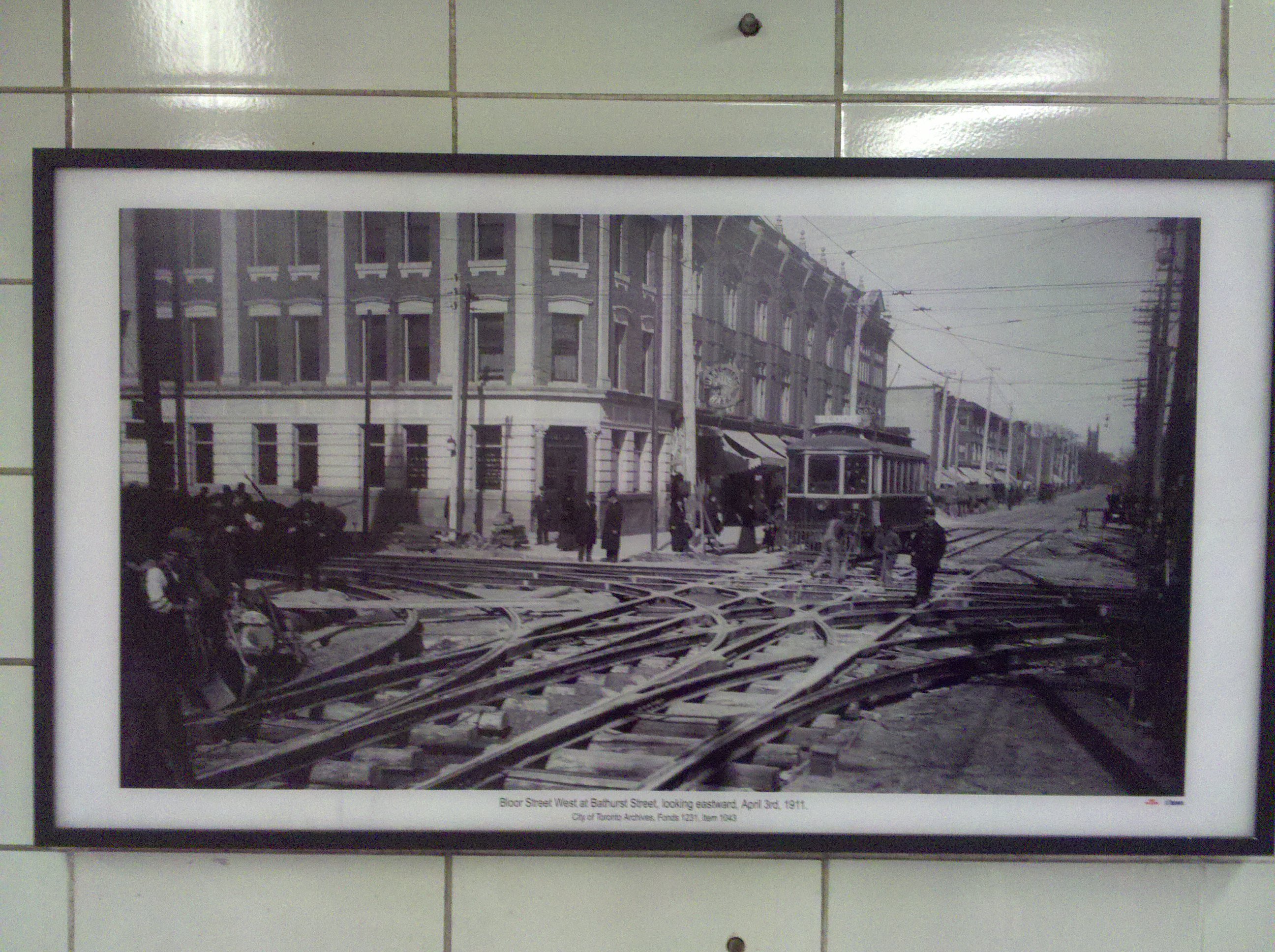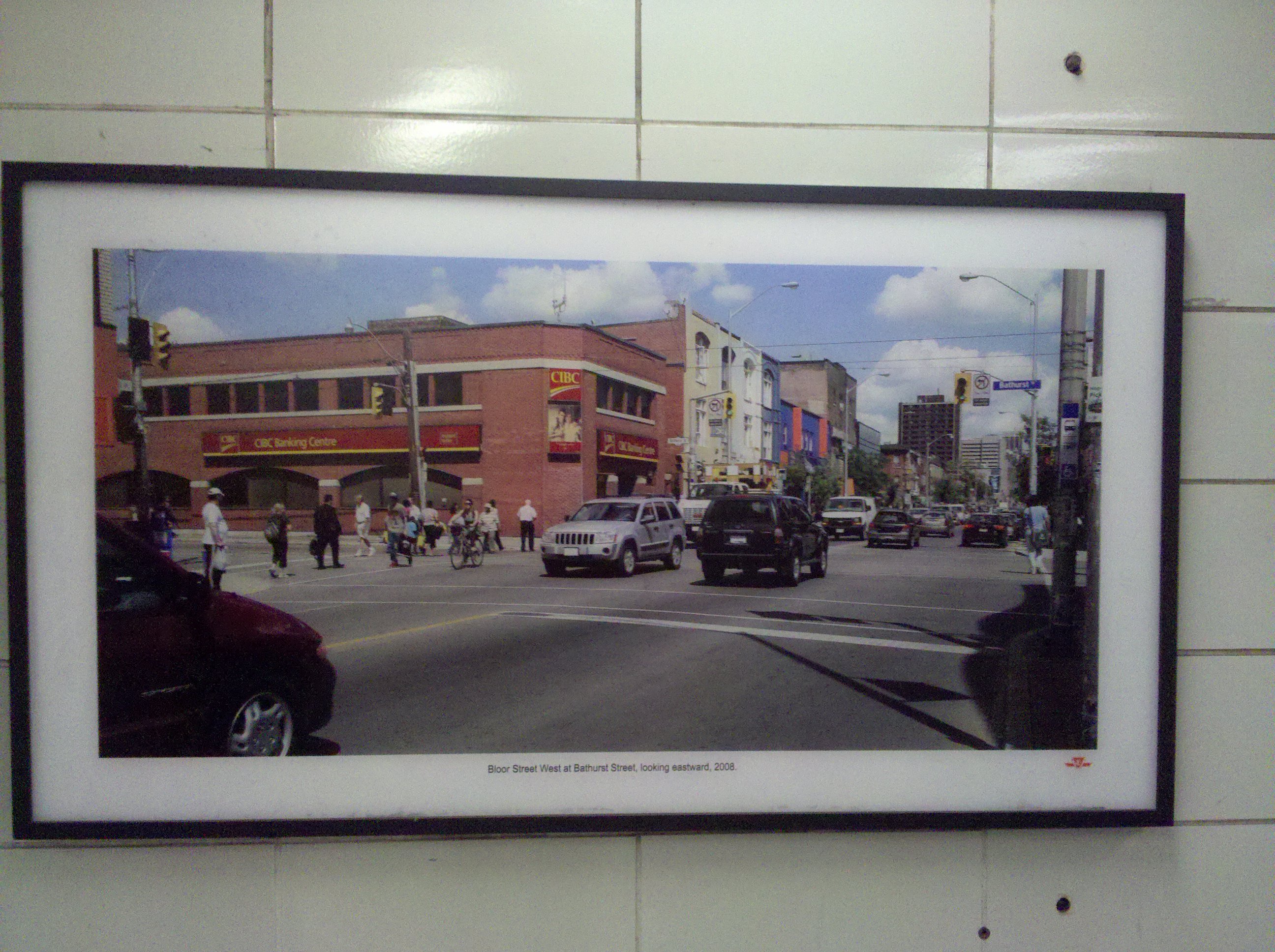 Today on the way to a clients for work I passed through Bathurst Station. There I found todays picture. It’s another picture comparing the past to the present. This time it’s the corner of Bathurst and Bloor. I had planned on a longer time between posts but I was at the station today so I took the shot. Of course I’ve yet to see these type of pictures at any other station so it could be a long time before you see another.