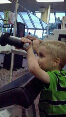 Our little family is going through a lot of changes. From eating better to working out. Today we went to the Gym, though most of the time the kids were in the child care centre. Jacob manged to get some time on the Machines.
