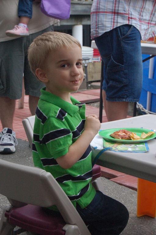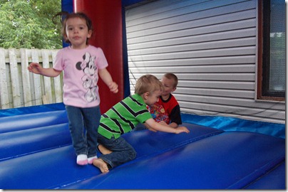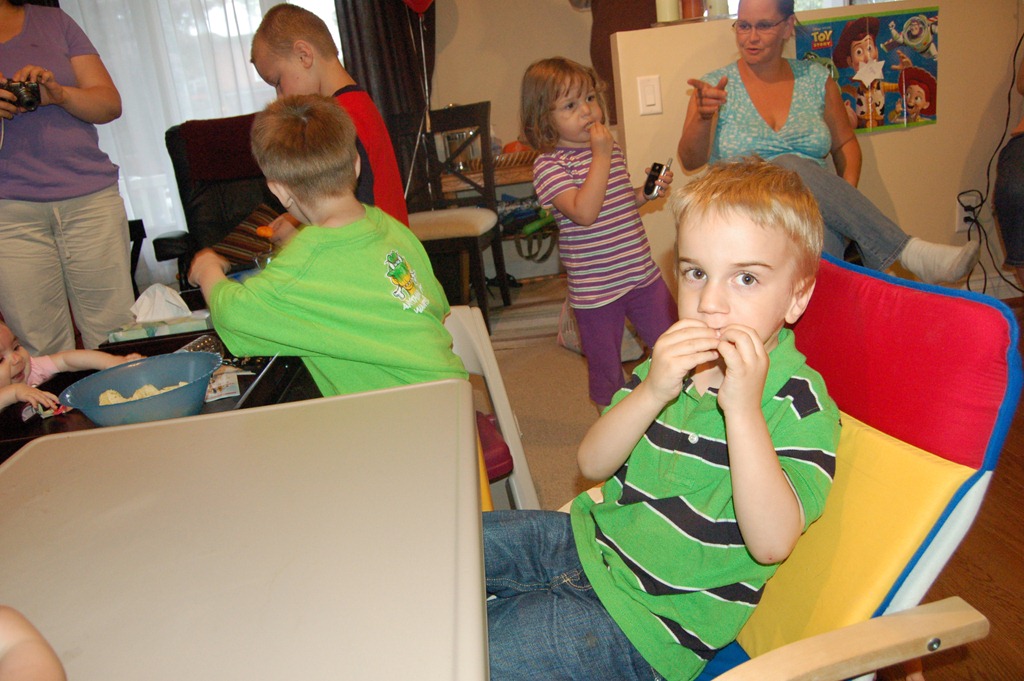Saturday we celebrated Jacobs birthday with friends and family. We held it at Nana and Papa’s in there backyard, till the rain started. Luckily for use it held out till we were just about ready to head in for Presents and Cake.