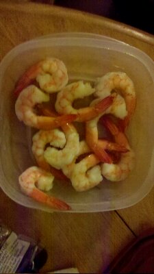 Tonight I managed to get out for a run… I have been doing most of my running on the treadmill at the gym, so it was good to get back on the street. When I got home I looked I looked into the fridge for a snack. I found shrimp, seemed like a good healthy snack.