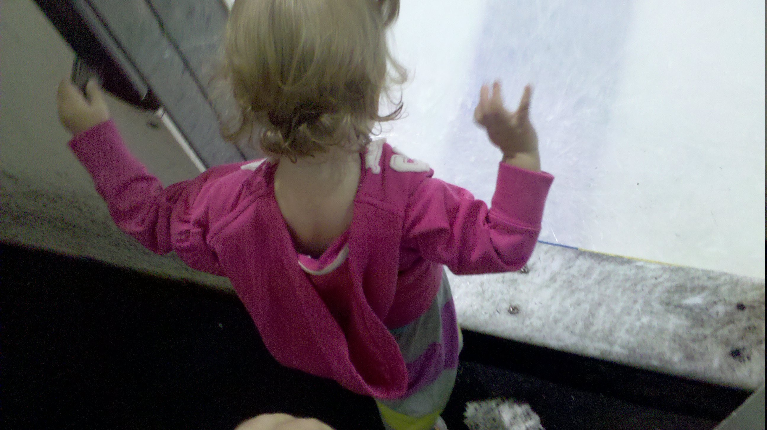 Lately Violet has taken a real interest in the ice at Jacob’s skating lessons. Every week she tries to get on the ice, and gets upset when I stop her. She really wants be on the ice and as soon as we find skates that fit her small feet and she turns 2, we’ll get her out there.