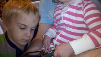 Of course Jacob couldn’t just let Violet play with his DS, so he came over to check it out: