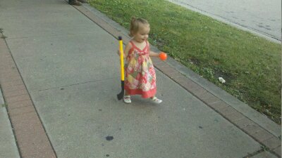 Today as we were getting ready to head to the park, Violet went into Jacobs room and grabbed Jacobs Hockey stick and ball. She wouldn’t put it down. She carried it all the way to the park. I tried to get her to hit the ball but with little success. Perhaps next time.