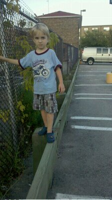 Today as we walked home from the store, Jacob tried to walk along the narrow wooden divider hear our house. He was pretty good at it, though he still needs to hold one to something or someone.