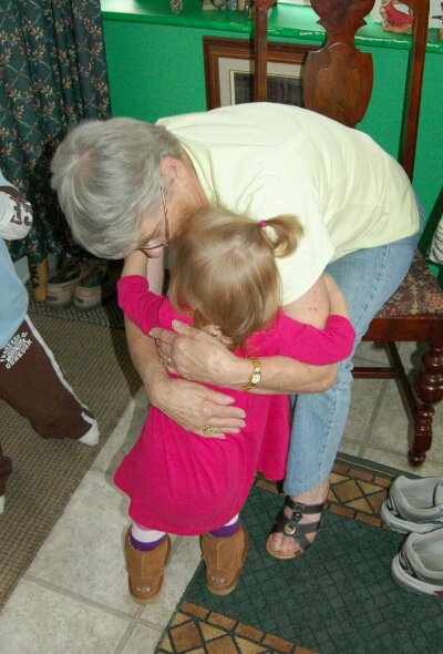 Today we spent some time at Melissa’s Dads house so that Melissa, Jacob and Violet could spend time with their Nanny and Grandpa. We tried for a good group shout but it didn’t turn out. SO I thought I’d use this picture of Violet giving her Nanny a hug. We’re hopping to get another chance before they head home next week.