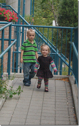 Today I seemed to take a lot of pictures, which makes choosing which to use for my photo. After going through them all I settled on this of the two walking down a ramp on the way over to my mom’s place to see her and her sister. It seems cute and a little mischievous to me, like these two might be getting into trouble one of these days. With all my pictures I didn’t get a good one of the My Mom, Aunt and the kids. Perhaps tomorrow I can try again.
