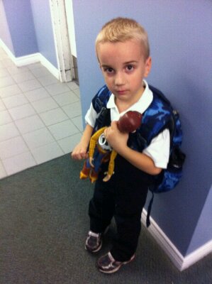 In honour of meet the teacher night at Jacob’s school I’ve decided to use a picture of Jacob headding off to school. It was weird client scheduling of today that let me get home in the middle of the day and take such a cute picture of our little school boy.