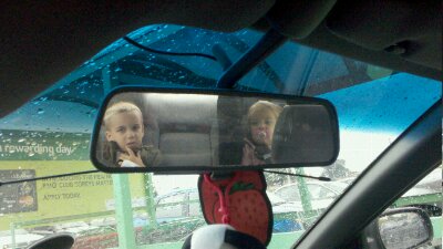 Today the family was out and about, first together at swimming. Then Jacob went with his Nana and Papa to lunch and shopping for skating gear. While The women folk and I hit the mall looking for presents. When we all were done we picked up Jacob in front of Sobey’s. While Melissa was picking up a few essentials, the kids and I sat in the car. While sitting there I played with taking a more creative picture. Should have really moved the car though…