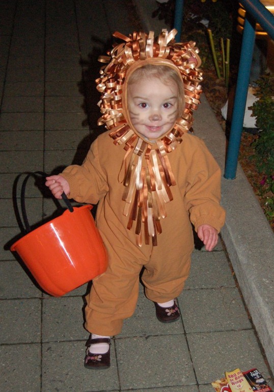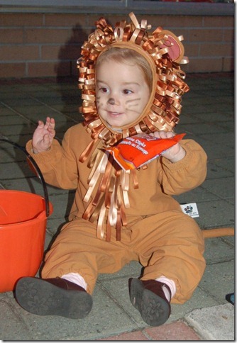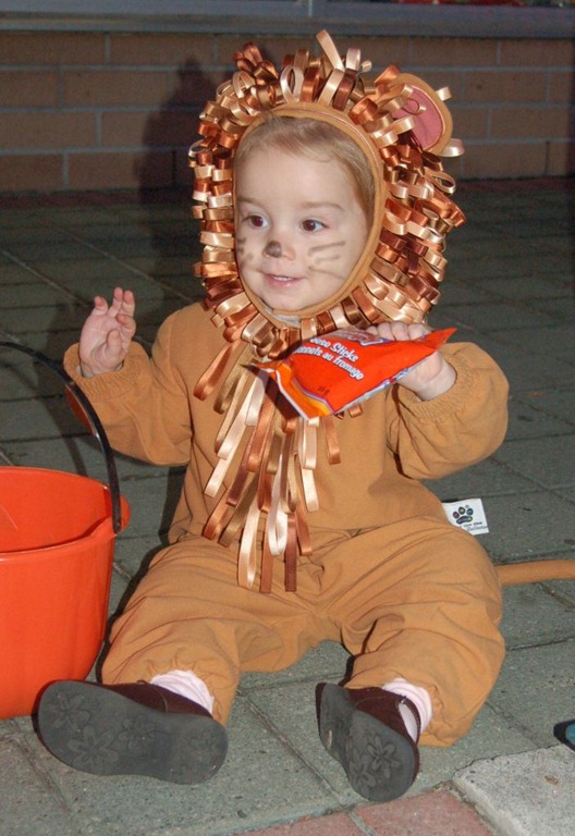Today was Halloween and so the kids dressed up and headed out to get candy. The night was clear but cold. The cold forced us to change Violet’s costume from the Ladybug or Bumblebee to Jacob’s old Lion. Though I have to say she looked adorable in it.