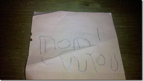 This morning our little boy did the sweetest thing, Melissa and I were laying in bed and he brought her this note. It’s amazing how well he wrote it. Except for his ‘U’ and ‘V’ looking a like it’s as good as mine. I guess his fascination with letters and words is starting to pay off. It was a sweet moment and a great way to start the day.