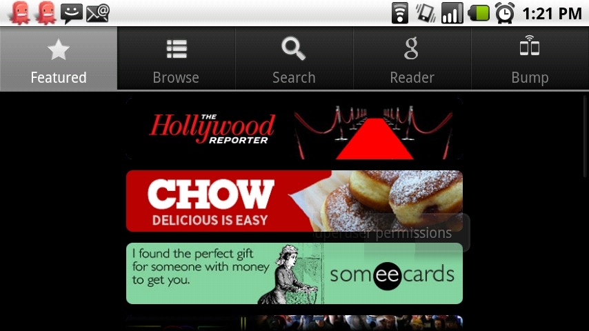 The Interface for adding feeds is as polished as when you read them, something I’ve found lacking in other News Readers. When you first go to add a feed you there is a selection of featured feeds. You can also Browse through categorized list of feeds, or search by source name, keyword or URL. It also supports pulling feeds from your Google Reader account, or by bumping your phone with another Pulse user.