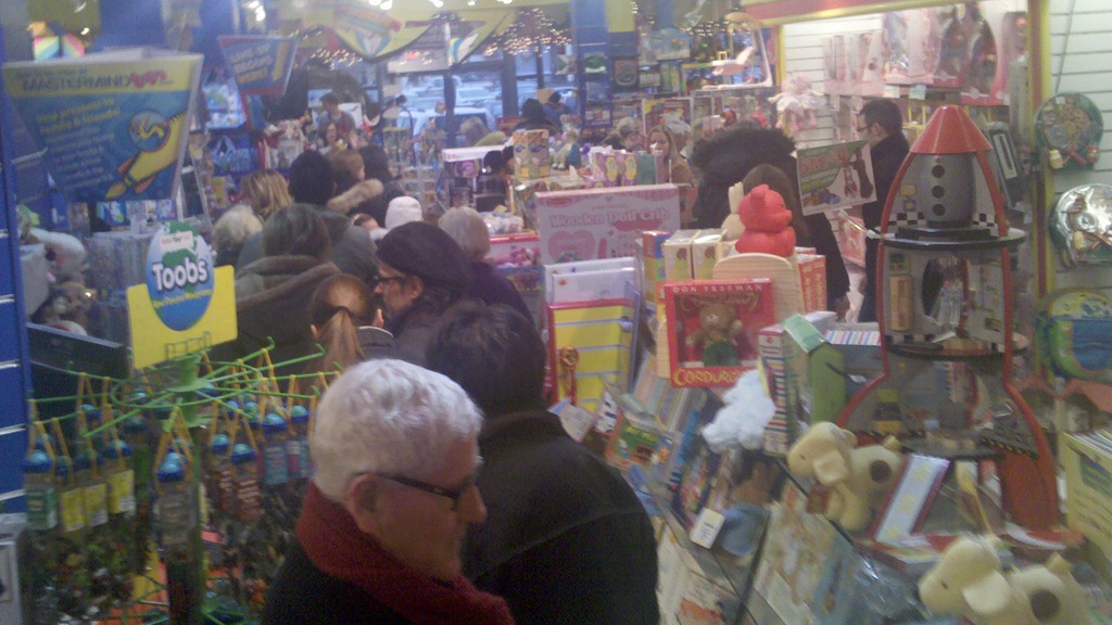 Today was a day of shopping for Melissa and Me. Uncle Jimmy watched the kids and we braved the malls trying to wrap up the rest of this years gifts. We started early and managed to beat the crowds for most of the day, though by the end it caught up with us. The line at Mastermind Toys snaked through the store and only grew as we waited in it. Luckily for us it reached it’s peek after we were already in it. We had a very productive day and it was nice to be able to spend the day with just the 2 of us.