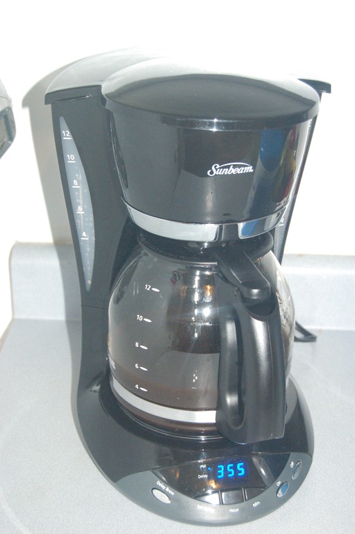 Today we have a follow-up to last weeks picture of me making coffee with a kettle and my broken coffee maker. Our picture is of our shiny new coffee maker my mom surprised me with last night. One interesting thought about this coffee maker is that it continues a tradition I hadn’t realised I’d started. I have never bought my own coffee maker. I’ve had coffee makers since before I moved out from my mom’s house but to this day I haven’t bought a single one.
