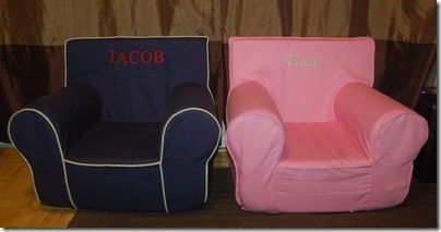 Today was a day of relaxing around the house, with a bit of work thrown in. We’re finding homes for some of the new things that have come in and trying to decide how we want our living room to look. It’s been the mostly the same since we moved in 2 years ago and it’s time for a change. Keeping with the theme started yesterday of show just a glimpse of our new living room at a time, todays picture is of Jacob and Violet’s new chairs. Stay tuned in the coming days to see the rest of our changes.