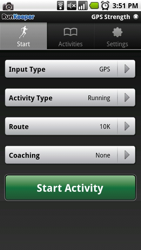 RunKeeper uses the GPS on your phone to track your outdoor actives and can provide audio feed back in real-time. With both pre-set interval announcements through the Coaching system or just regular updates of time and distance traveled. In the latest version you can even enter your indoor workouts right in the Android application, it’s been available on the iPhone and website for a while now. This allows you to track workouts on treadmill, elliptical, Stationary Bike and even Rowing Machines.