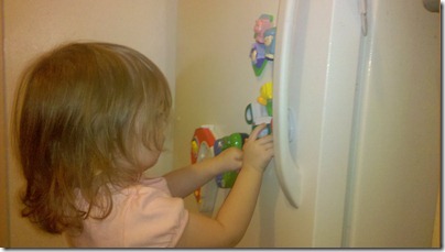 POD: Fridge Toys Posted on January 27, 2011by mrjCategories:Family, Fatherhood, Picture of the Day Today while cooking dinner, Violet entertained her self with some of the toys we have on our fridge. It’s amazing how into the toys she gets, but the best part is she’ll play with that while I get dinner ready. Share this: Click to share on Facebook (Opens in new window) Facebook Click to share on X (Opens in new window) X Like this:Like Loading... Related mrj www.geekwithkids.com