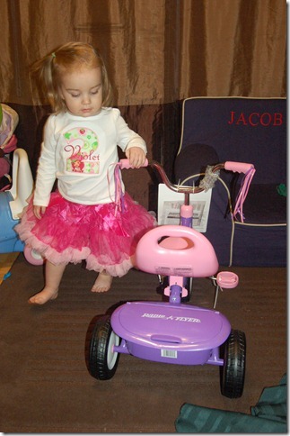 POD: Happy Birthday Violet Posted on January 20, 2011by mrjCategories:Family, Fatherhood, Picture of the Day Today Violet turned 2. So we had a nice dinner and opened some presents. Our picture is of Violet looking over her new Trike. Share this: Click to share on Facebook (Opens in new window) Facebook Click to share on X (Opens in new window) X Like this:Like Loading... Related mrj www.geekwithkids.com