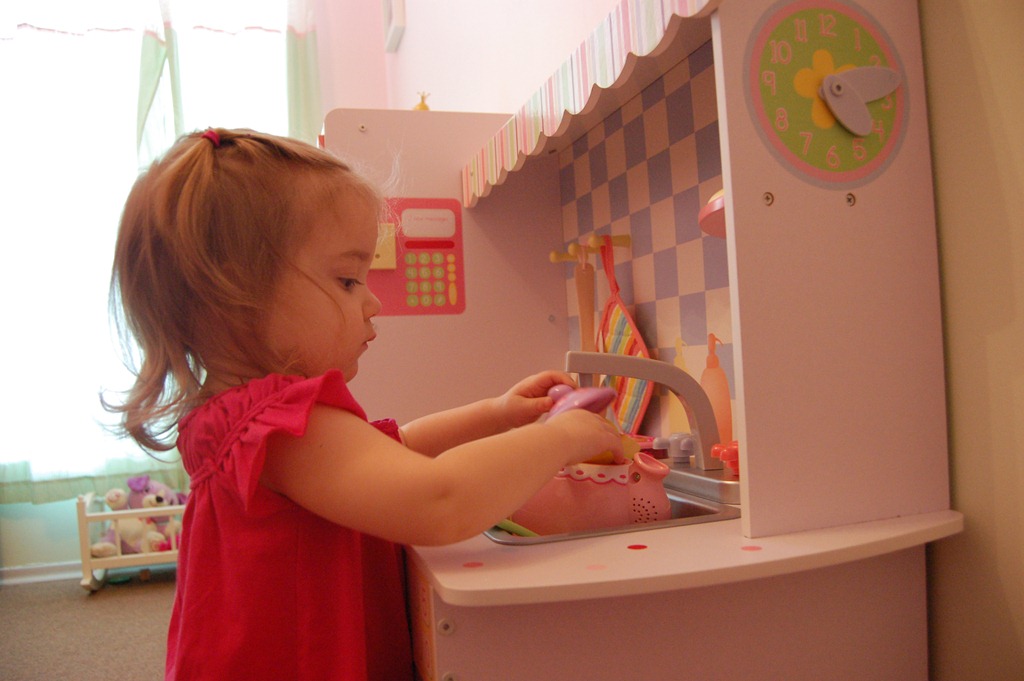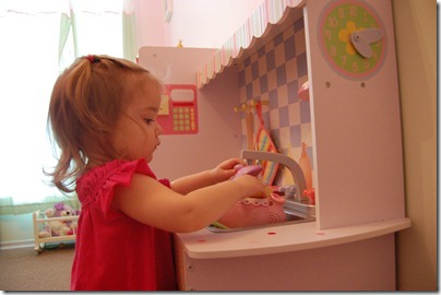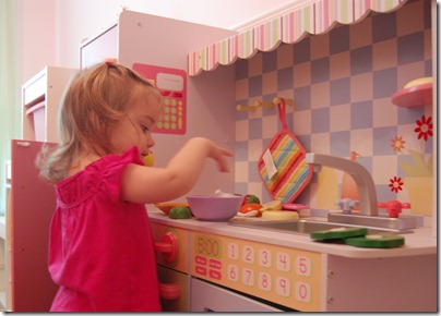 Today Violet had her 2 year appointment that included a surprise shot. When we got home from the appointment we spent some time in her room playing with her kitchen. It’s quite amazing to see how engaged she gets with all the different activities in her kitchen.