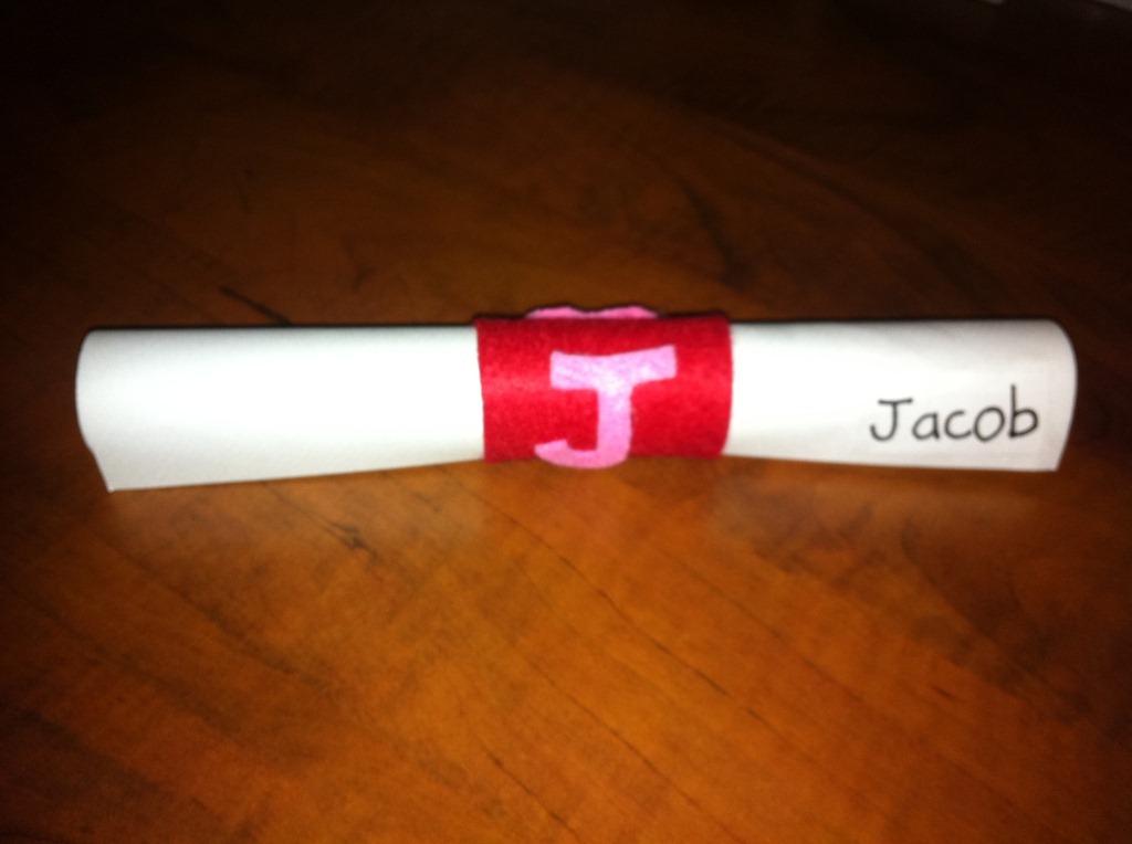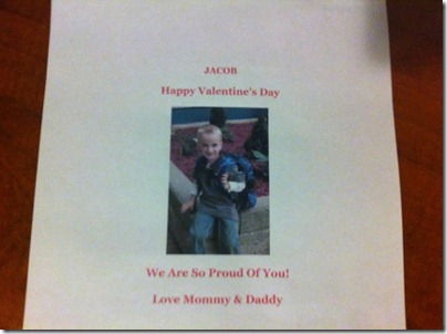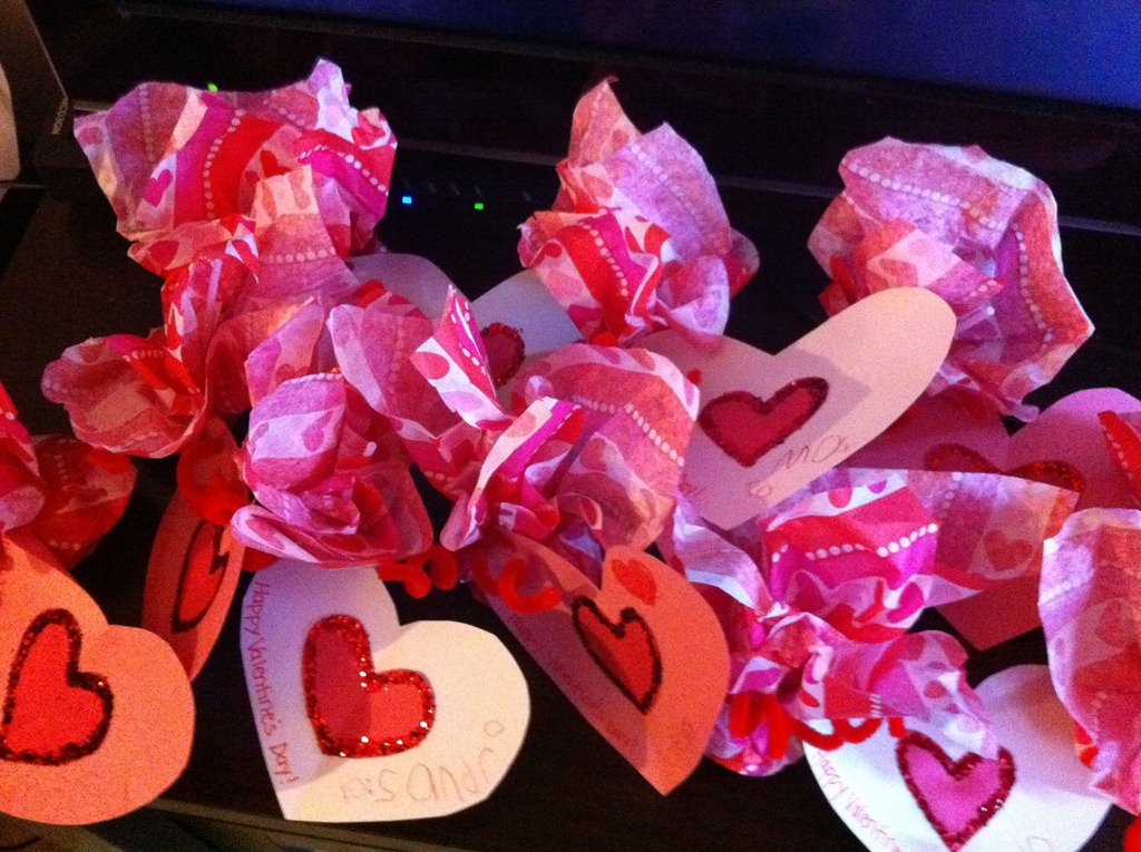 Over the last couple of days Jacob and Melissa have been hard at work cutting, gluing and sparkling. Of course it was split between them, though Jacob wrote the names each of his 20 classmates. It’s amazing to watch how his handwriting is improving. Do kids have to grow up so fast?