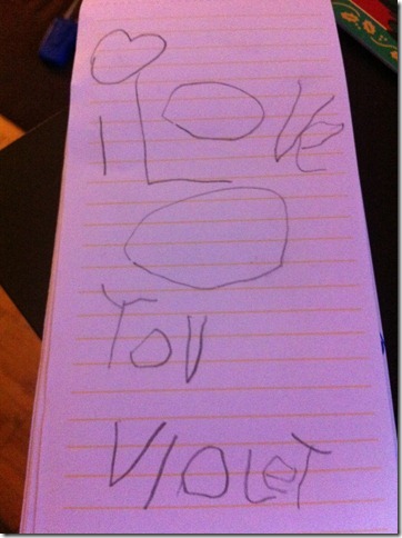 POD: Notes for the rest of the family Posted on February 10, 2011by mrjCategories:Family, Fatherhood, Picture of the Day Today Jacob took the time to write a notes for Melissa and Violet. It’s such a sweet thing for my little guy to do. Share this: Click to share on Facebook (Opens in new window) Facebook Click to share on X (Opens in new window) X Like this:Like Loading... Related mrj www.geekwithkids.com