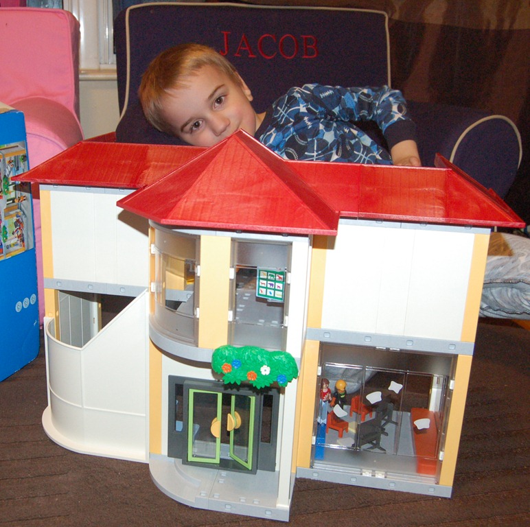 Today I put together one of Jacob’s Christmas presents. His Playmobil School, it’s quite a toy. Of course the thought of bringing it’s 492 pieces into our house seemed crazy, but when we opened it up it became clear that, that number included each little connector piece that I used to put it together. There sill are a lot of little pieces, but not quite 492.