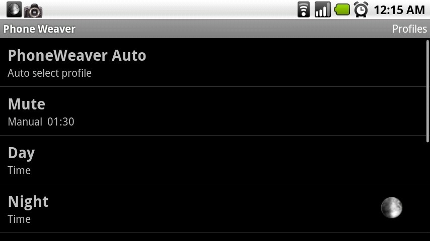 PhoneWeaver adds Smart Automatic Profiles to your Phone. Profiles can be triggered by Time, Location or even calendar. Profiles can control all aspects of your phone. Turn on or off WIFI, Bluetooth, 3G data, GPS and even change the home screen wallpaper.
