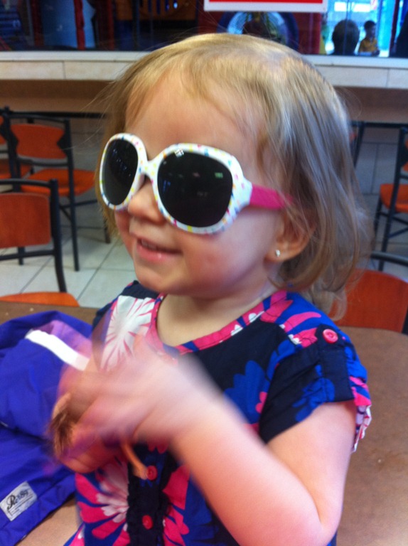 Today while out Violet picked out a pair of sunglasses. The most amazing thing about it was that she kept them on. So now I wonder if we’ll be able to find a pair that Jacob will keep on this summer.