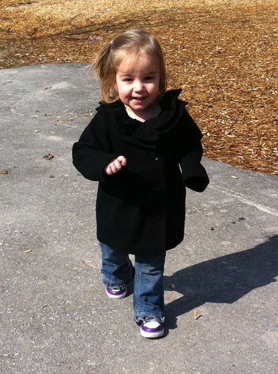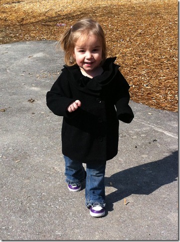 With all that is going on tonight, it seemed I couldn’t find time to get a picture or a post. So tonight we use a picture Melissa snapped of Violet on their trip to the park this afternoon. Looking at my baby girl in this picture makes me wonder how long I have left before she tells me that she’s not a baby.